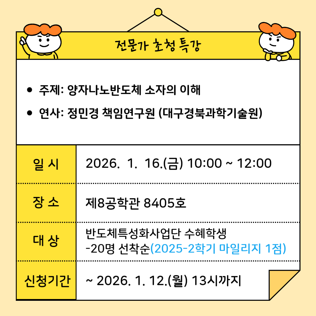 - 대상: 반도체특성화대학사업단 수혜학생 20명 선착순